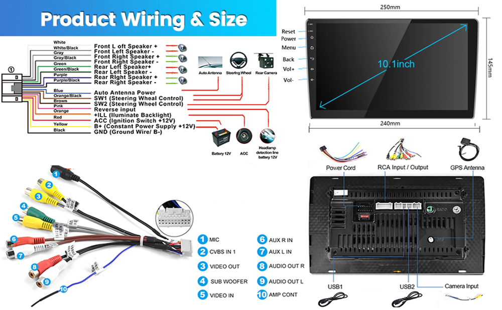 - Built-in FM with 18 preset stations, you can listen to real-time traffic, news broadcasts and weather forecast with this car radio.