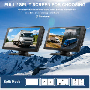 • 【Split-Screen Multi-Camera Monitoring】 View up to 4 camera angles simultaneously with our split-screen system! Includes: 1) Rear camera for safe backing 2) Towing assist camera 3) Left/right side cameras for blind spot coverage. Perfect for RVs – eliminates dangerous blind zones and makes parking/reversing easier than ever. Complete 360° protection for your vehicle.